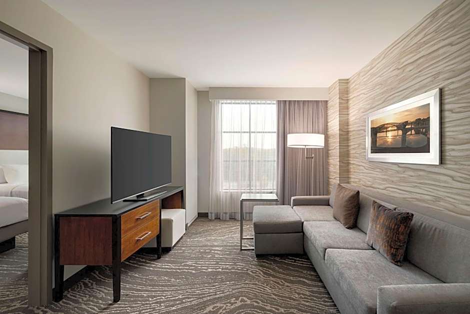 This suite features microwave, small refrigerator, and seating area with sofa bed.